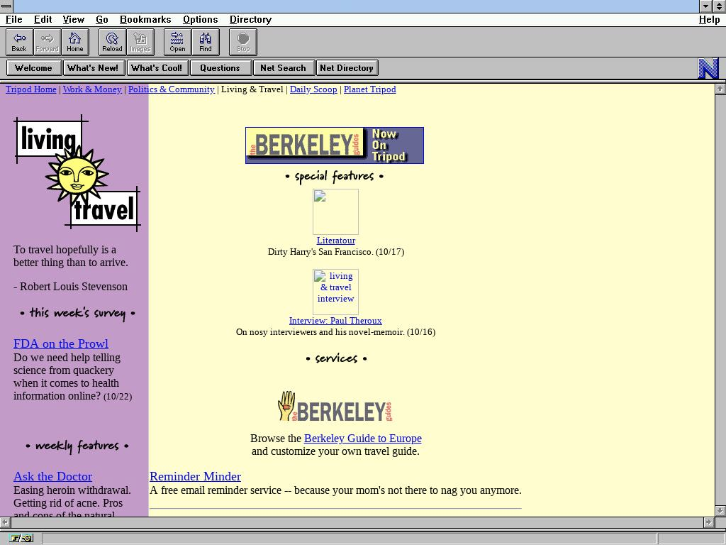 This reminds me of a tiny subreddit that doesn't get much traffic: /r/archivetourism. It's for sharing Archive.org copies of classic websites.
