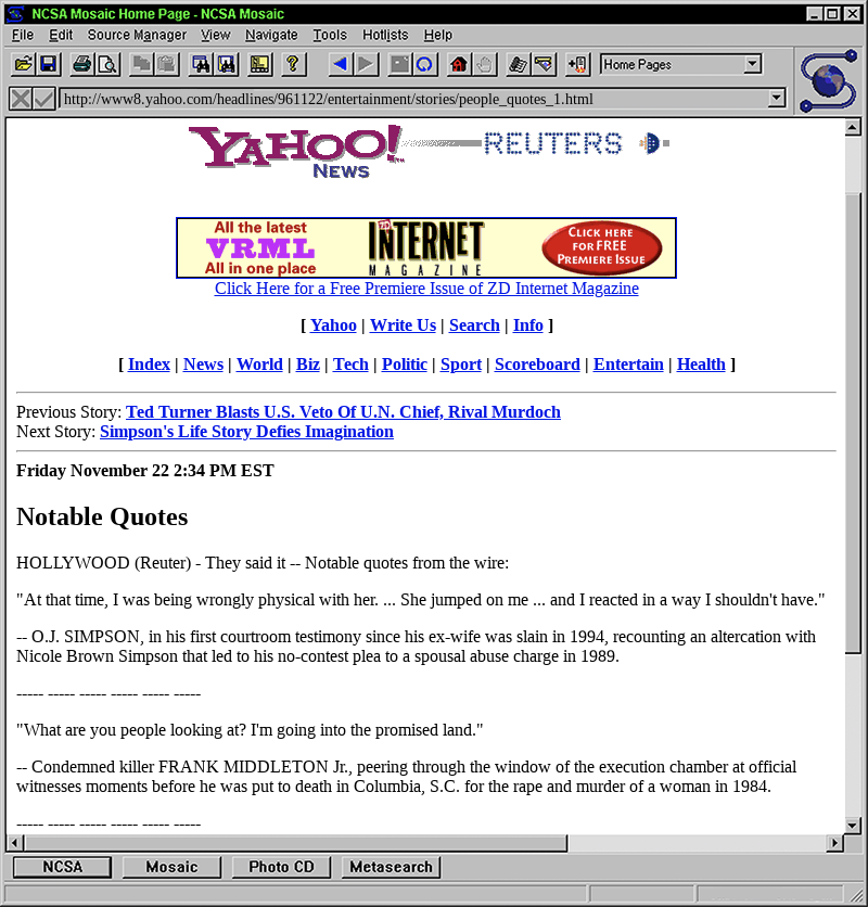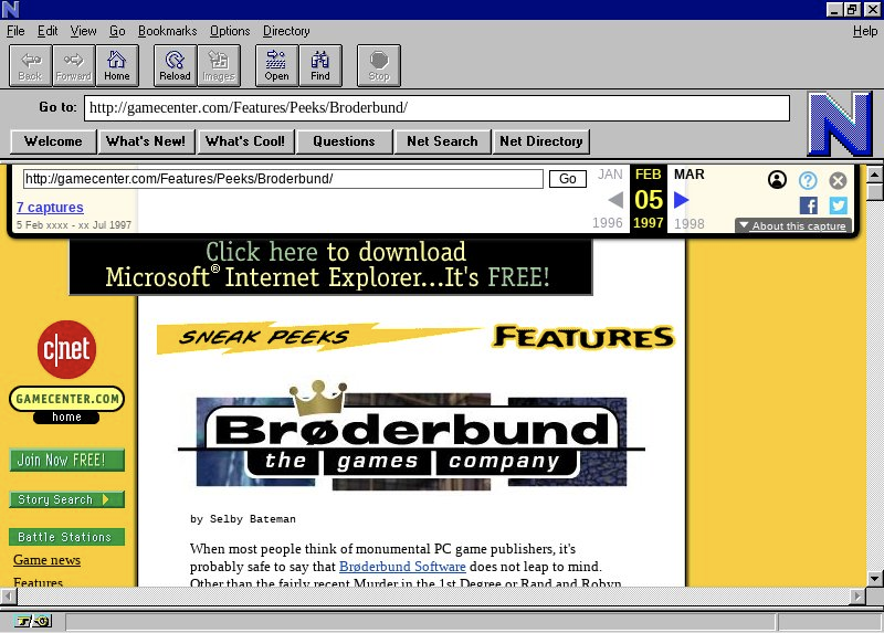 Thanks for putting this together. How did you get the browser window (forward & back buttons, etc) to look like browsers from that era? I assume you used archive .org for this....I don't know how you got the browser to look that way.
