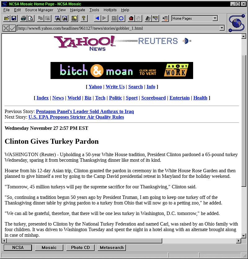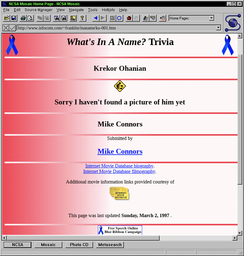 Wow... the Mosaic browser... that's what was loaded on the SunOS workstations in my university computer lab, way back in the day.!